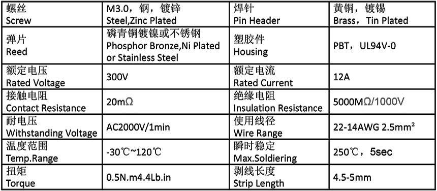 6、接线端子胶芯材料=PA66 V0阻燃或PB9T阻燃金属件=磷铜