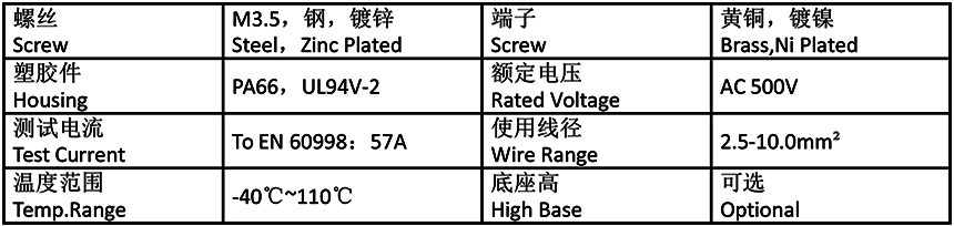 6、接线端子胶芯材料=PA66 V0阻燃或PB9T阻燃金属件=磷铜
